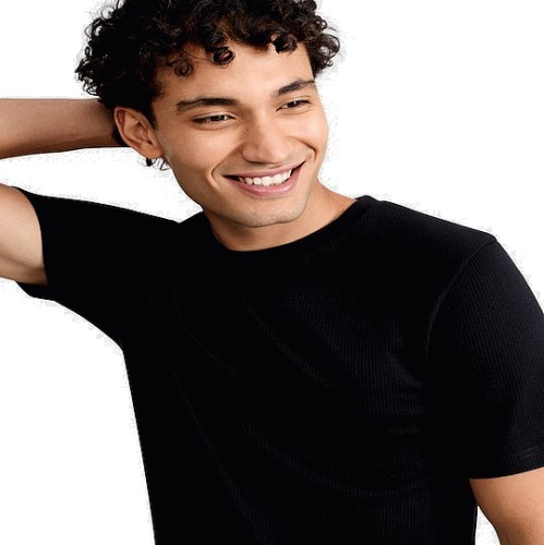 WARMPLUS Medium Warmth Ribbed Short Sleeved Thermal T-Shirt in Black