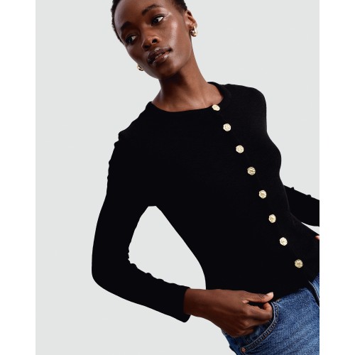 Cotton Blend Ribbed Button Up Cardigan in Black