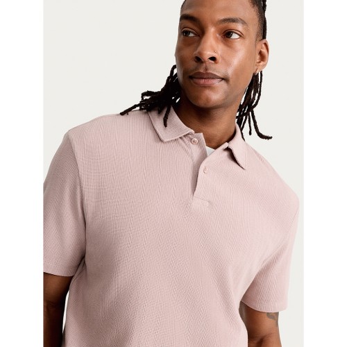 Cotton Blend Textured Short Sleeved Polo Shirt in Pink