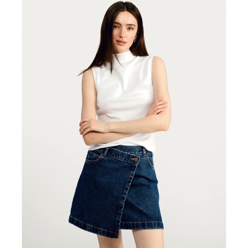 Cotton Modal Blend High Neck Sleeveless Top in White