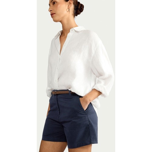 Cotton Rich Belted Mid Rise Chino Shorts in Navy