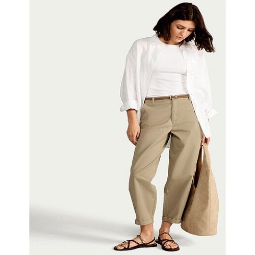 Mid Rise Belted Tapered Chino Trousers in Stone