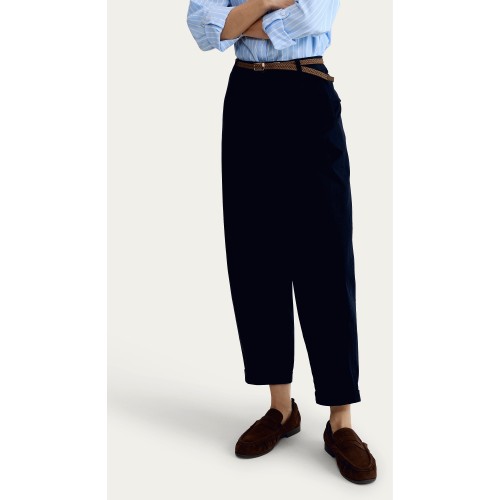Cotton Rich Belted Tapered Mid Rise Chino Trousers in Navy