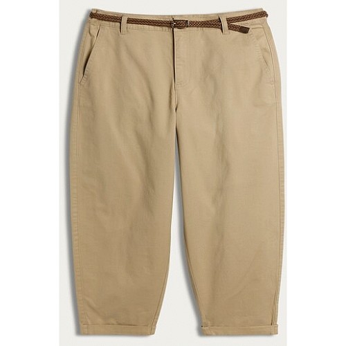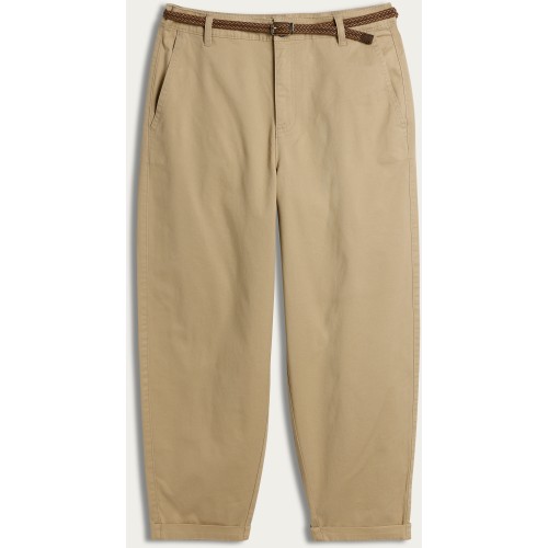Mid Rise Belted Tapered Chino Trousers in Stone