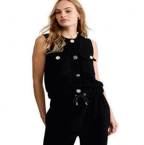 Cotton Rich Boucle Buttoned Waistcoat in Black
