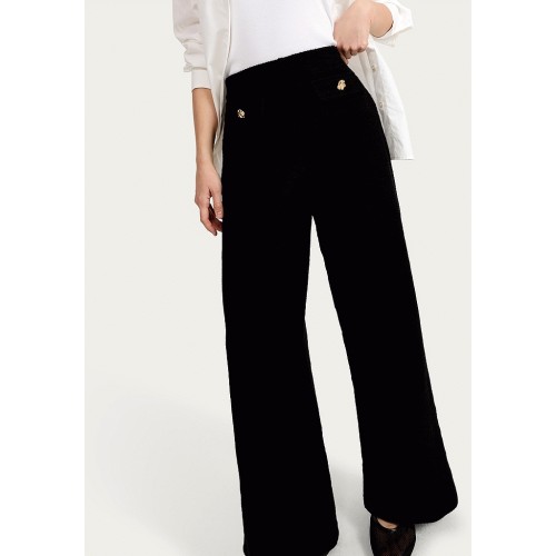 Cotton Rich Boucle Textured Wide Leg Trousers in Black
