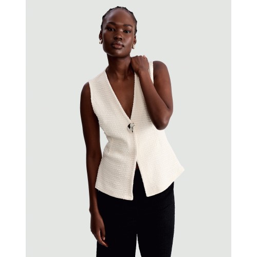 Boucle Textured Sleeveless Waistcoat in Cream
