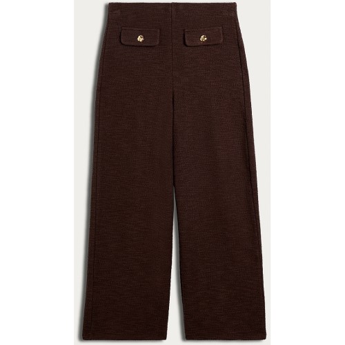 Cotton Rich Boucle Textured Wide Leg Trousers in Chocolate