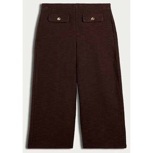 Cotton Rich Boucle Textured Wide Leg Trousers in Chocolate