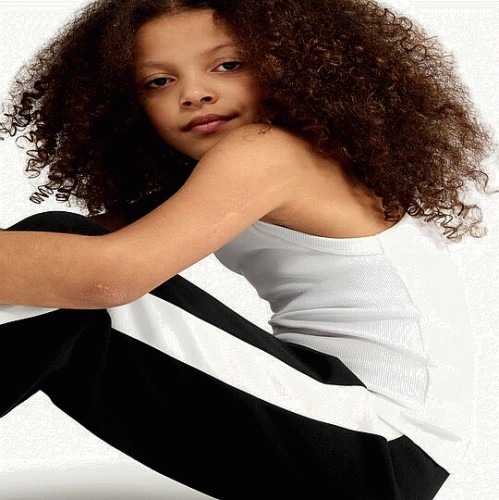 F&F Girls Crinkle Textured Wide Leg Drawstring Trousers in Black