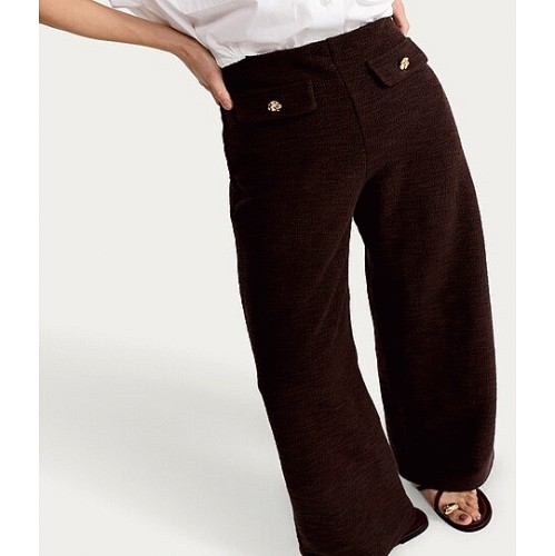 Cotton Rich Boucle Textured Wide Leg Trousers in Chocolate