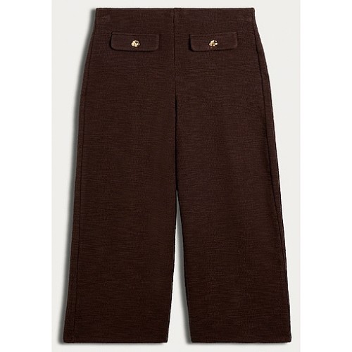 Cotton Rich Boucle Textured Wide Leg Trousers in Black