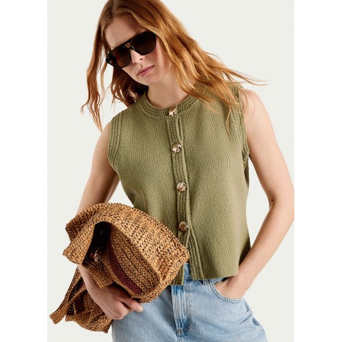 Pure Cotton Knitted Button Front Hooded Cardigan in Blue