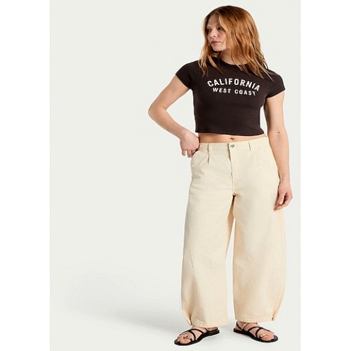 Cotton Rich California West Coast Slogan Cropped T-Shirt in Brown