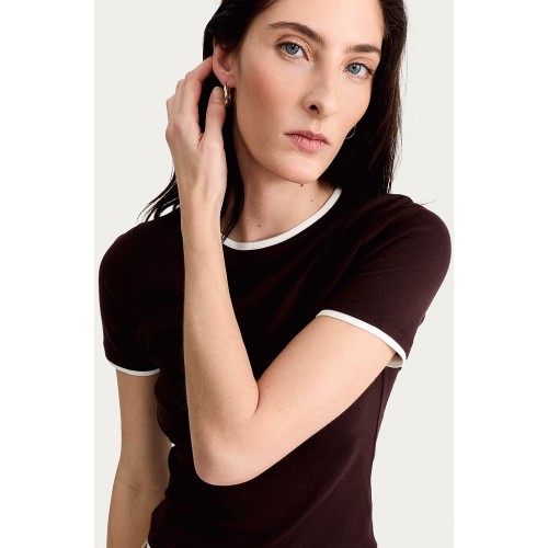 Pure Cotton Double Layer Cropped T-Shirt in Brown