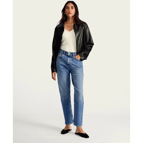 Cotton Rich Comfort Stretch High Rise Slim Mom Jeans in Blue