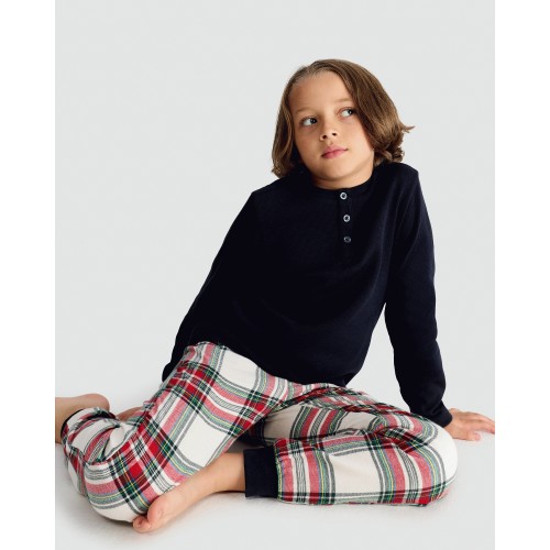 Boys Pure Cotton Henley Top and Cuffed Bottoms Pyjamas in Multi