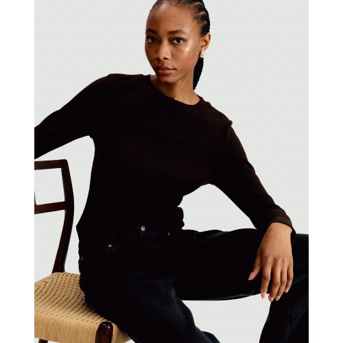 Cotton Rich Crew Neck Long Sleeved Top in Brown