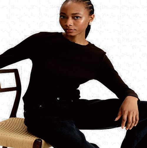 Cotton Rich Crew Neck Long Sleeved Top in Brown