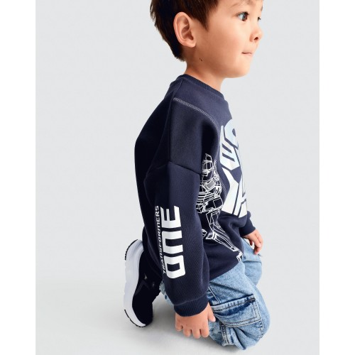 Transformers Cotton Rich Autobot Print Crew Neck Sweatshirt in Navy