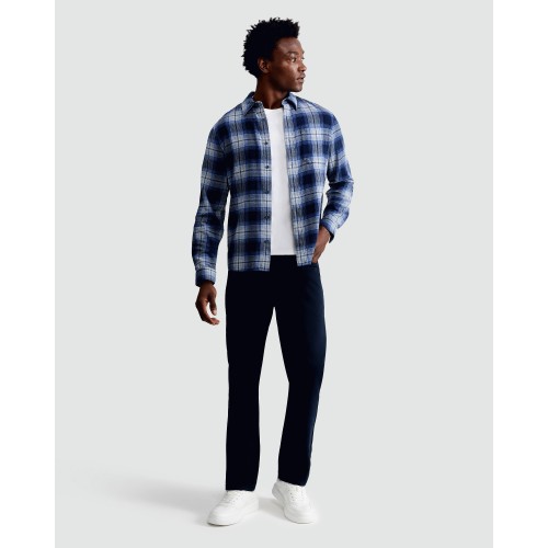 Cotton Rich Crinkle Check Print Long Sleeved Shirt in Navy