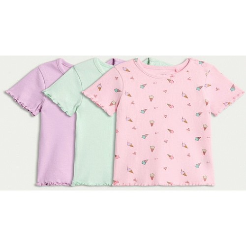 3-Pack Cotton Rich Ice Cream Print Short Sleeved T-Shirts in Pink