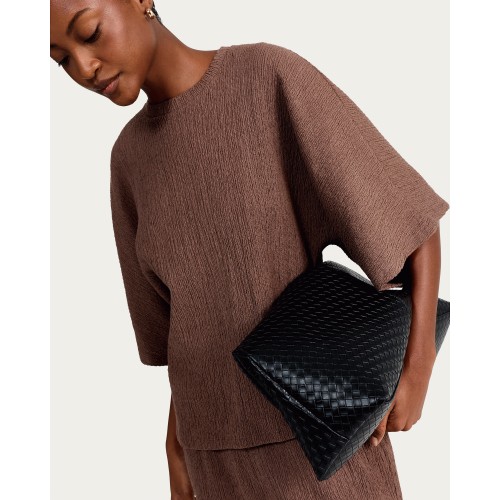 Cotton Rich Crinkle Textured Cape Co-ord Top in Chocolate