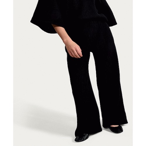 Cotton Rich Crinkle Textured Wide Leg Co-ord Trousers in Black