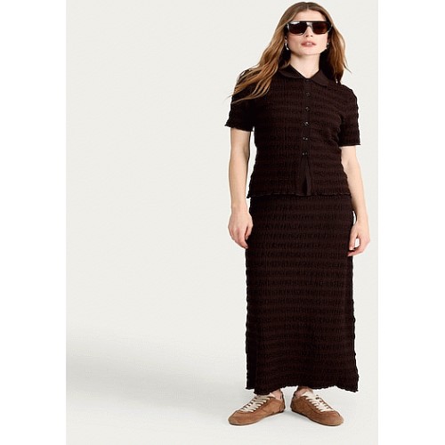Crinkle Textured Co-ord Midi Skirt in Chocolate