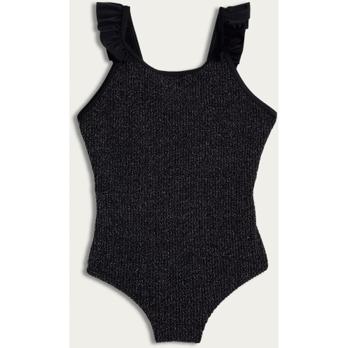 F&F Girls Metallic Crinkle Textured Swimsuit in Black