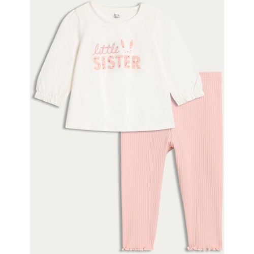 2-Piece Cotton Rich Little Sister Top and Leggings Set in Cream