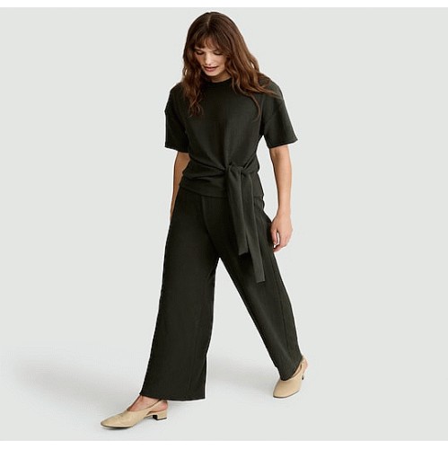 Crinkle Wide Leg Co-ord Trousers in Olive