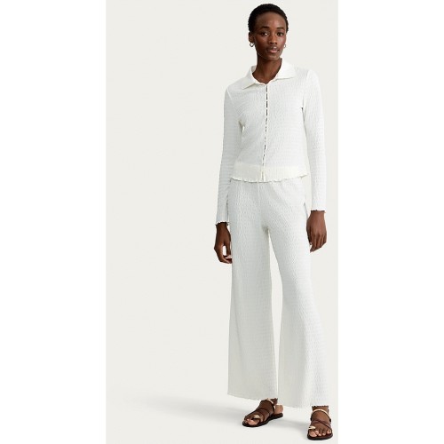Crinkle Textured Wide Leg Co-ord Trousers in Cream