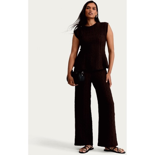Cotton Rich Crinkle Textured Wide Leg Co-ord Trousers in Chocolate