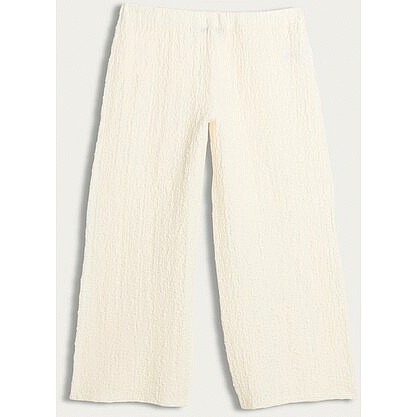 Cotton Rich Crinkle Textured Wide Leg Trousers in Cream