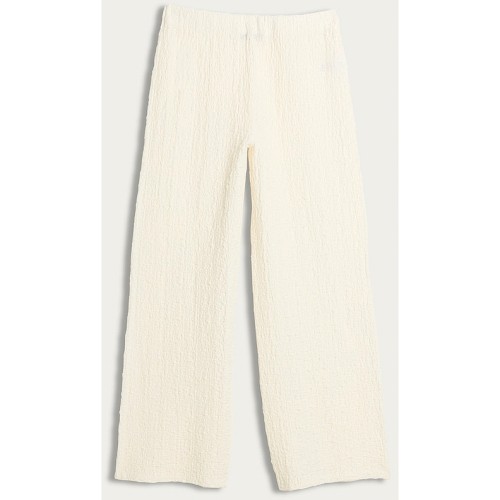 Cotton Rich Crinkle Textured Wide Leg Trousers in Cream