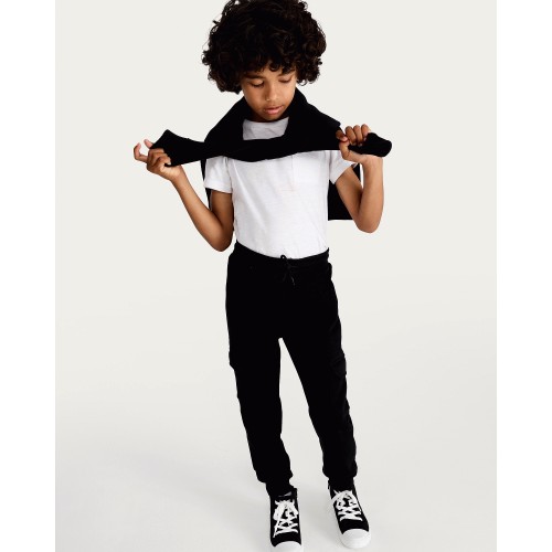 F&F Boys Cotton Rich Cuffed Drawstring Cargo Joggers in Black