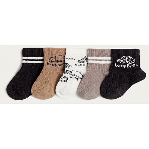 Baby 5-Pack Cotton Rich Vehicle Print Ankle Socks in Multi