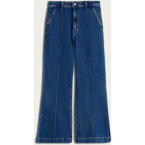 Cotton Rich High Rise Seam Flared Jeans in Navy