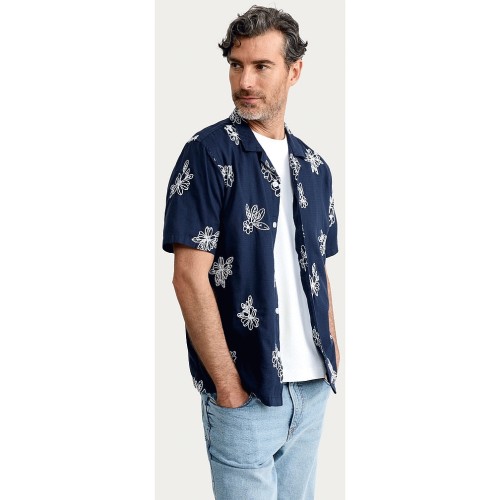 The F&F Edit Cotton Rich Floral Embroidered Short Sleeved Shirt in Navy