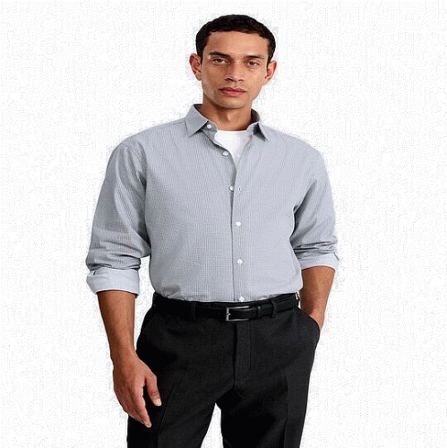 Cotton Rich Crinkle Check Print Long Sleeved Shirt in Navy