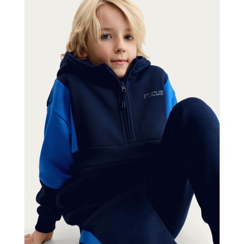 F&F Boys Cotton Rich Colour Block Half Zip Hoodie in Navy