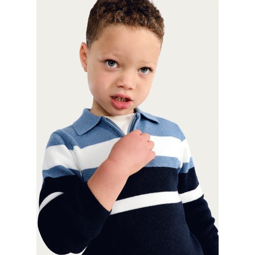 Cotton Rich Half-Zip Colour Block Sweatshirt in Navy