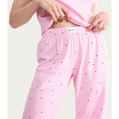 Pure Cotton Heart Print Pyjama Bottoms in Pink