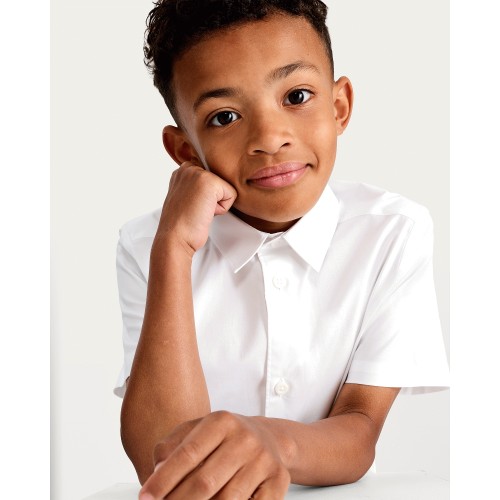 F&F School Boys 3-Pack Cotton Rich Skinny Fit Short Sleeved Shirts in White