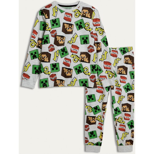 Microsoft Minecraft Print Cotton Rich Top and Trousers Pyjamas in Multi