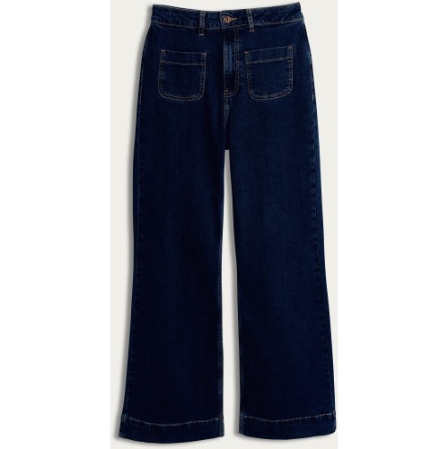 High Rise Flared Patch Pocket Jeans in Navy