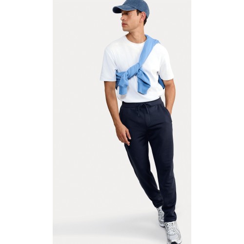 Cotton Rich Drawstring Open Hem Slim Fit Joggers in Navy
