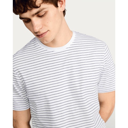 Pure Cotton Regular Fit Stripe Crew Neck T-Shirt in White