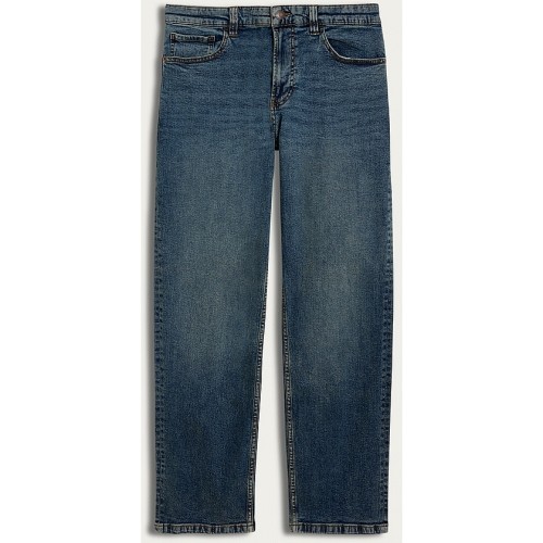 Cotton Rich Relaxed Straight Leg Jeans in Navy